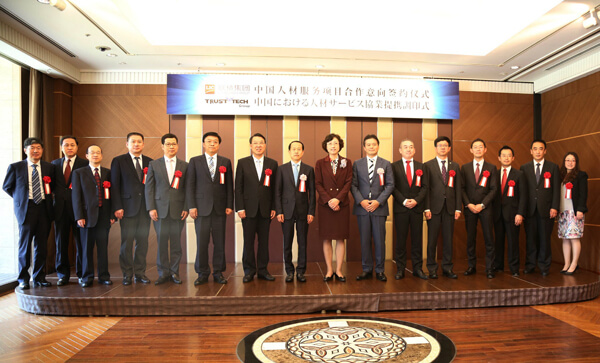2016年5月18日上午,聯(lián)橋集團(tuán)與株式會(huì)社TRUST TECH“中國人材服務(wù)項(xiàng)目合作意向簽約儀式”在東京舉行,聯(lián)橋集團(tuán)董事長慕镕鍵與株式會(huì)社TRUST TECH社長西田穣代表雙方簽署了合作協(xié)議,威海市委副書記、市長張惠,高區(qū)黨工委書記、管委會(huì)主任劉偉,威海市商務(wù)局局長鄧勇,聯(lián)橋集團(tuán)董事、副總經(jīng)理于福杰等領(lǐng)導(dǎo)出席儀式。