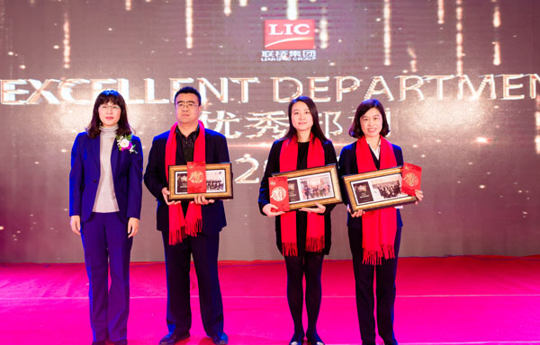 年會第一項(xiàng),由集團(tuán)公司董事慕衛(wèi)波宣讀表彰先進(jìn)決定,莊嚴(yán)隆重的頒獎典禮正式開場。雄壯渾厚的音樂回蕩在會場大廳,震撼人心;鏗鏘有力、滿含深情的頒獎詞,高度凝練呈現(xiàn)了2016年度“卓越貢獻(xiàn)獎”、“明星部門”、“先進(jìn)部門”、“優(yōu)秀部門”、“發(fā)展部門”等獲獎部門的閃光點(diǎn);閃耀著金屬色光芒的頒獎畫面,引起強(qiáng)烈的視覺沖擊,將榮耀盡顯其中。先進(jìn)個(gè)人身披紅圍巾,精神抖擻,喜氣洋洋地依次上臺領(lǐng)獎,集團(tuán)領(lǐng)導(dǎo)班子集體頒獎。骨干部門與優(yōu)秀員工,支撐了公司各個(gè)事業(yè)版塊的發(fā)展,代表著聯(lián)橋人的艱辛和擔(dān)當(dāng),折射出聯(lián)橋人的責(zé)任和力量。