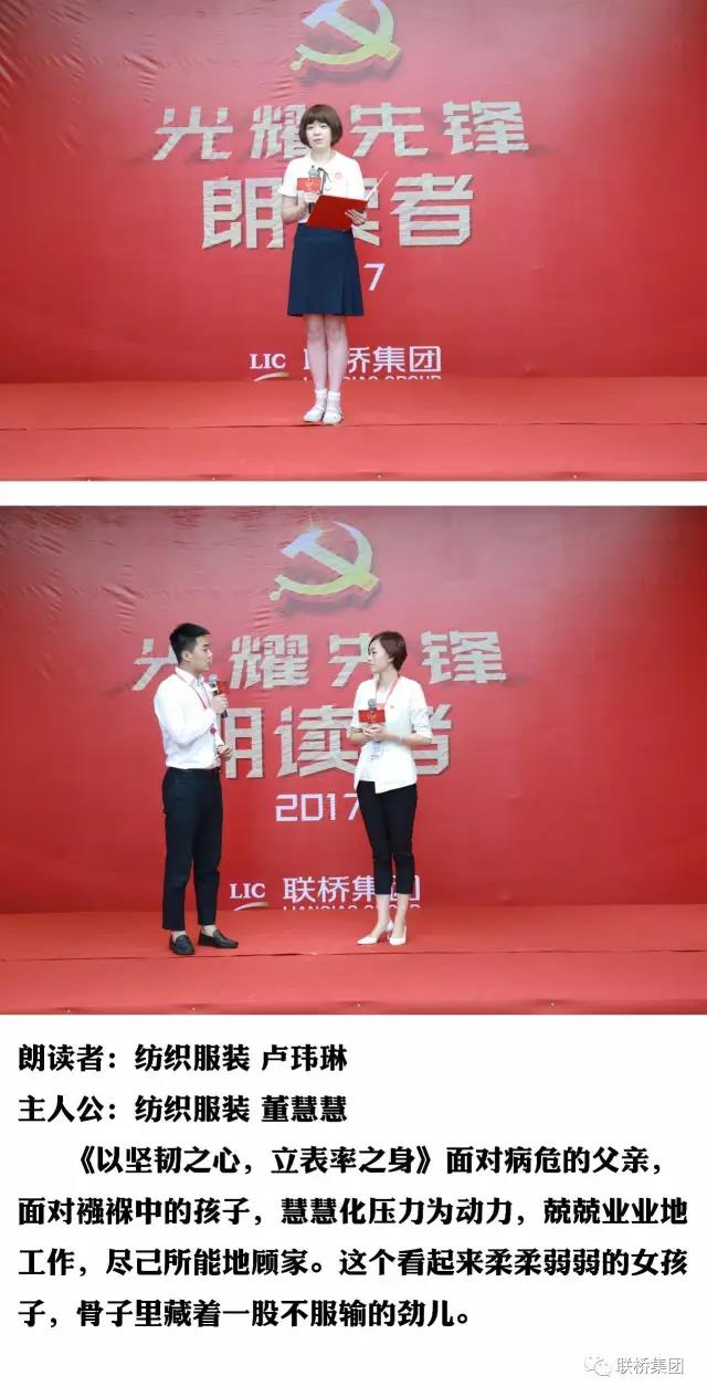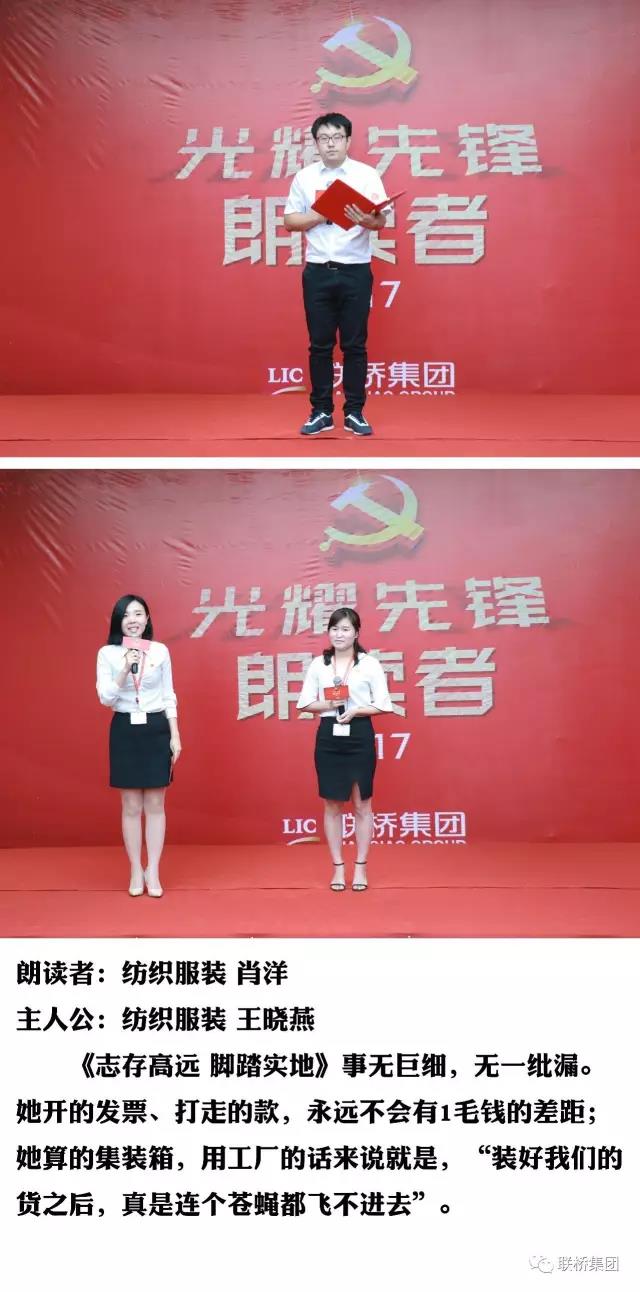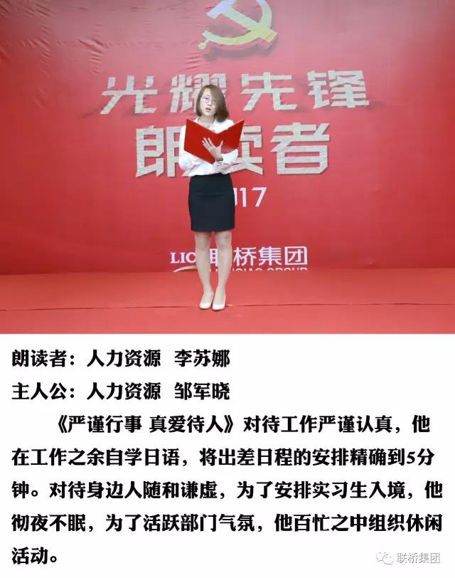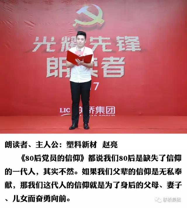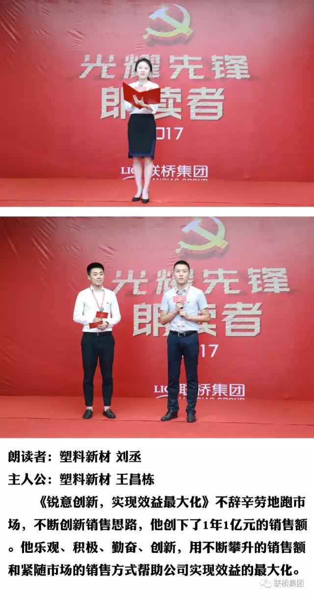 2017年7月26日下午,聯(lián)橋集團(tuán)黨委舉辦了“光耀先鋒朗讀者”活動(dòng),150名黨員齊聚一堂,用《朗讀者》的節(jié)目形式,講述聯(lián)橋光耀先鋒優(yōu)秀黨員的感人故事。集團(tuán)黨委書(shū)記、董事長(zhǎng)慕镕鍵,集團(tuán)董事、塑料新材黨支部書(shū)記慕衛(wèi)波,集團(tuán)黨委副書(shū)記宋威麗等領(lǐng)導(dǎo)出席了活動(dòng)。