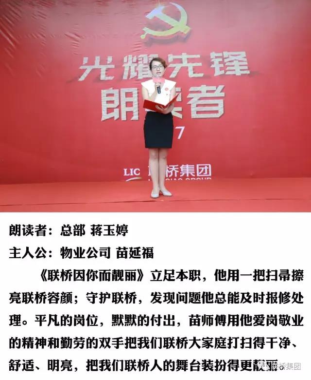 “光耀先鋒朗讀者”活動(dòng)只是聯(lián)橋集團(tuán)豐富多彩的黨建活動(dòng)的一個(gè)縮影。這些年來(lái),伴隨著集團(tuán)黨委的不斷發(fā)展壯大,黨建活動(dòng)形式也不斷豐富創(chuàng)新,黨員故事會(huì)、重溫入黨誓詞、“感黨恩,跟黨走”系列活動(dòng)等等,極大增強(qiáng)了黨組織的凝聚力和黨員隊(duì)伍的活力,讓聯(lián)橋黨員們傳承先鋒意識(shí),一路光耀前行,成為助推集團(tuán)經(jīng)濟(jì)發(fā)展的先鋒力量。