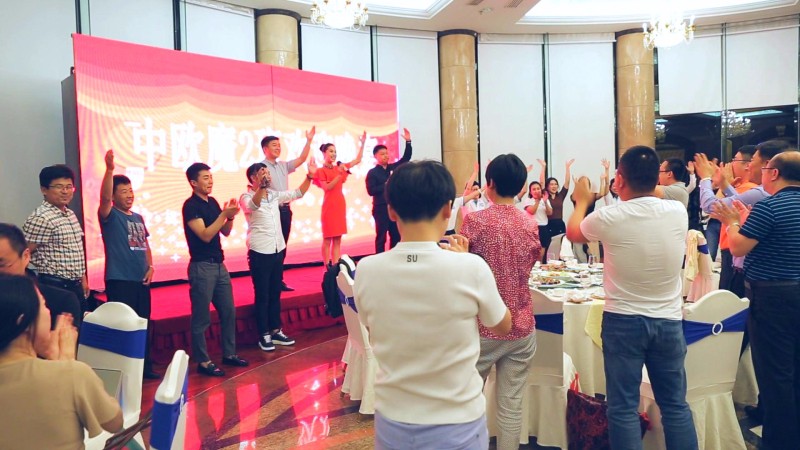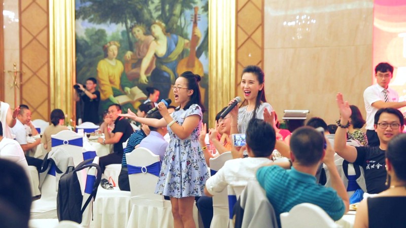 如果說下午的座談讓大家受益匪淺,那么晚上的接待晚宴,則讓所有學(xué)員感到興奮不已和深深震撼。在慕衛(wèi)波董事幽默風(fēng)趣的祝酒詞后,在杯盞交換暖意融融的席間,隨著悠揚(yáng)的音樂響起,深情的《老同學(xué)》歌聲從身邊飄來,拉開了由聯(lián)橋藍(lán)色暢想合唱團(tuán)快閃表演的帷幕?!锻辍?、《哎呦媽媽》、《朋友》等經(jīng)典歌曲,帶給現(xiàn)場(chǎng)學(xué)員一次又一次的驚喜,《我的太陽》則將整場(chǎng)晚宴推向了高潮。