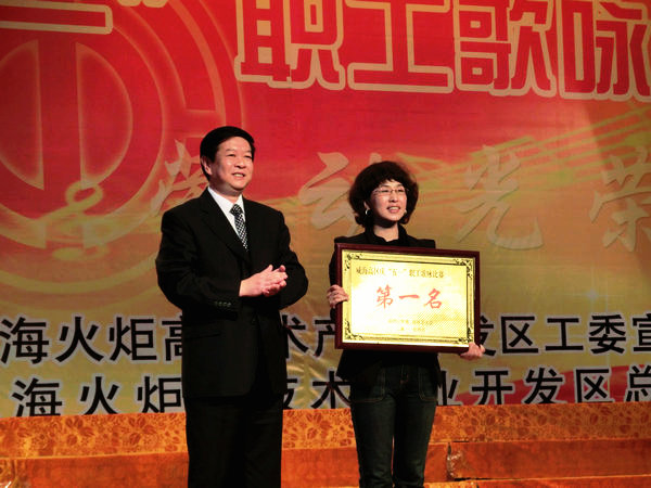 比賽中,合唱隊(duì)隊(duì)員們整齊亮麗的著裝,高昂振奮的風(fēng)貌,鏗鏘有力的歌唱,將比賽氣氛推向了高潮。一首《國家》將聯(lián)橋人熱愛祖國、心懷感恩的情懷一一道來,八位女員工的手語表演配合歌曲旋律顯得溫婉柔美;而《咱聯(lián)橋的人》則以投身高區(qū)建設(shè)和發(fā)展為依托,以詩朗誦和演唱相結(jié)合的方式,唱出了公司員工艱苦奮斗、敬業(yè)愛崗、團(tuán)結(jié)一心、共鑄輝煌的激情與豪邁,為建黨90周年和高區(qū)成立20周年獻(xiàn)上了一份厚禮。