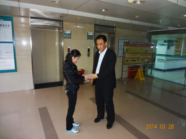 2014年3月8日,集團公司副總經(jīng)理于福杰帶著聯(lián)橋 人的無限愛心,專程趕往湖北,來到吳小歡接受治療的武漢協(xié)和醫(yī)院,親切看望慰問吳小歡,并將第一筆捐助款6萬余元送到了吳小歡家人手中,繼續(xù)接受醫(yī)院化療,此時病情相對穩(wěn)定。